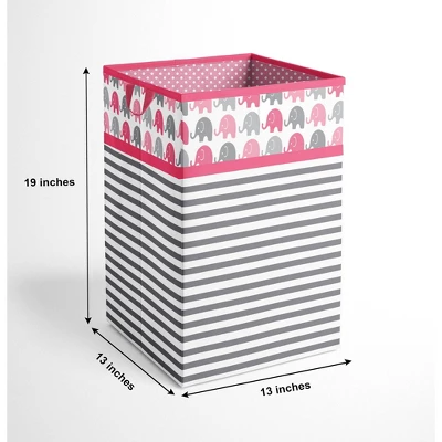 Need somewhere to toss your little ones outfit from last night? This collapsible hamper from Bacati has you covered! Measuring 14 inches by 14 inches by 19 inches, it provides a large amount of room to house all yesterdays clothes. Having a deep storage capacity, the hamper is perfect for multiple days worth of clothes. It is collapsible, saving you space when storing away. With a sturdy construction, this hamper is built to last and will make a great addition to any little ones room. The beautiful Bacati prints on the outside are the last cherry on top that makes this hamper extra special. Get your hands on Bacatis collapsible hamper today for a more lively and organized space! Dimensions: 19 H x 14 D x 14 W inches