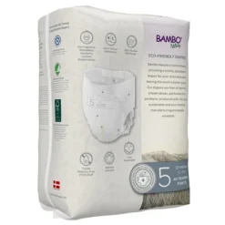 Bambo Nature’s eco-friendly, disposable training pants are free of harmful chemicals, all known allergens and now the fluff pulp is made TCF (totally chlorine-free). These training pants are designed to make potty training easy. Your toddler will feel like a big kid with flexible, thin and easy to pull up and down design. Bambo training pants feature a three-layer design with a super absorbent core that can stand up to multiple wettings—even overnight. Size 5 fits toddlers weighing 27 – 40 lbs.