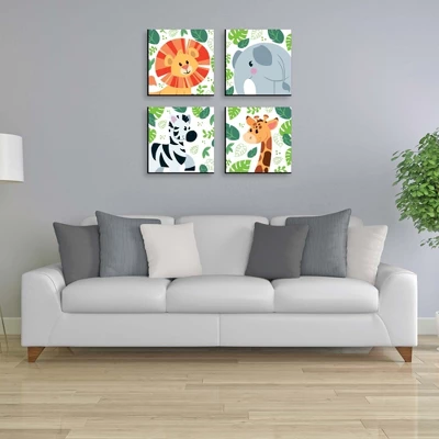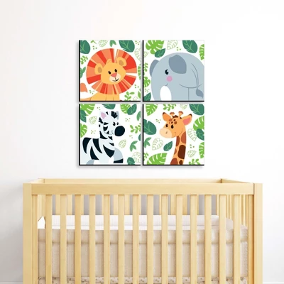 Jungle Party Animals Wall Art Set INCLUDES 4 ready-to-hang zoo animal themed panels and non-marking wall mounts for easy hanging. Jungle Party Animals artwork is perfect for home decor. Jungle Party Animals Kids Room, Nursery and Home Decor SIZE each 10 inches high x 7.5 inches wide x .5 inches thick. Jungle lightweight art prints will arrive ready to use – no frame needed. The black edge gives each print a modern, finished look. EASY TO HANG: Simply attach a non-marking wall mount (included) to each corner of a Jungle Party Animals art panel and press to hang in desired location. Wall mounts are repositionable, so you can redesign your artwork display at any time. PREMIUM HOME DECOR: 4-piece Jungle Party Animals Wall Art Set is professionally printed on thick material with a black edge. You will not need to frame this set of animal room decor. Each standout print is ready to hang and will add a contemporary touch to any room. MADE IN THE USA: Jungle Party Animals Room Decor is designed and manufactured at our Wisconsin facility using materials that are Made in the USA.