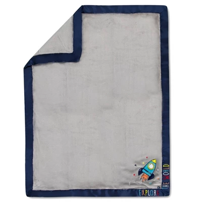 All parents dream of giving their baby the moon and stars. The Fisher-Price Explore the World 30”x40” plush blanket is adorned with satin trim, bright colorful letters, and a rocketship to propel baby to reach his dreams. Incredibly soft fleece with tactile letters and embroidery, it’s the perfect decorative throw for any little dreamer’s nursery, and is an out-of-this-world part of the Fisher-Price Space Explorer Collection.
