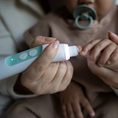 Scared of a snip slip? Nix your nail-care nerves and take total trimming control with the Electric Nail Buffer. It safely buffs and shapes tiny nails and cuticles, so you can keep up with your baby’s non-stop nail growth. Easily change speed and direction as you go, and switch the grit as needed with four interchangeable buffer pads for newborn nails to coarser toddler claws. An always-on LED task light eliminates shadows for more focus and precision, day or night. Once you’ve nailed their mani/pedi, store everything in the secure case with your go-to pad in place, so you can grab and buff with one hand when the next snag strikes.