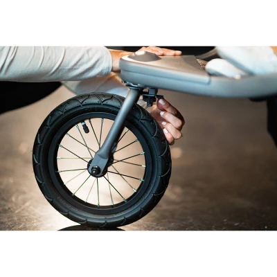 The ZoomX2 Double Jogger is the best and lightest double jogger out there, able to carry two little ones up to 50 lbs per seat. Superior suspension for a smooth ride, quick and easy one-handed compact fold for easy storage and transportation. Air-filled tires, a linked brake system, and a super comfortable soft wide seats! Secure and Comfortable seats with a padded 5-point harness. Each seat can be independently adjusted to any position from upright to fully reclined. Multi-position waterproof canopies can be adjusted to several positions ranging from fully closed to fully extended, or any position in between. Easy to maneuver, can be operated with the front wheel in swivel mode or locked mode; for serious runners. Plenty of room to bring it all, the easily accessible large basket can carry up to 15lbs. of necessities. We also added two mesh compartments in each seat for snacks or toys. We’ve included a parent organizer, for all your personal essentials. Also included is a tire pump!
