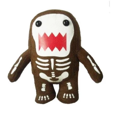 Well, hello there! This is Domo and he’s dressed up for Halloween in his glow in the dark skeleton costume. He is a strange creature which hatched from an egg and lives in an underground cave. He has a large sawtoothed mouth that is locked wide open but don’t be afraid. He’s a softie at heart. Take him wherever you go. Collect them all.