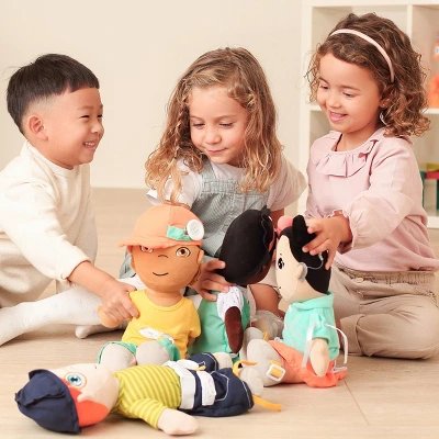 The fastening doll offers children many ways to practice fine motor skills. Through zippers, buttons, snaps, buckles, and shoe laces, children will learn to undress and dress themselves. This doll will also assist students in developing respect for diversity of genders and races. This doll can also help users learn about their community and others around the world. Doll measures 15″.