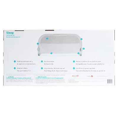 Munchkin’s Sleep Bed Rail combines the utmost in safety with fun, modern style. This innovative child safety rail features a durable aluminum frame and stylish gray accents. The safety straps eliminate gaps between the bed rail and mattress, providing excellent security, and a push-button folding hinge allows kids to climb in and out of bed easily. The Sleep Bedrail fits twin, full, and queen-sized mattresses and measures 18″ tall and extends to 36″ wide. One bed rail included – purchase two to create a double bed rail.