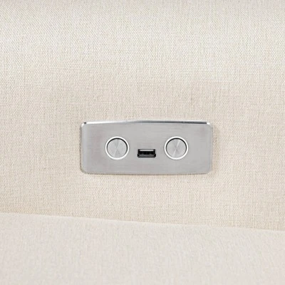 The Linden Power Recliner blends comfort, convenience, and style in your nursery space. with a soft pillowback and cozy armrests, the chair provides a space to unwind throughout the day, while the elegant nail head details add a thoughtful touch to its classic silhouette. The Linden’s electronic reclining mechanism allows you to relax at the push of a button and its USB port keeps you charged while you rest with your baby. with a back-and-forth swivel and 360-degree glide, you can rock your baby to sleep with ease.