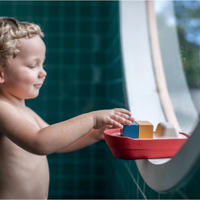 This small yet powerful water toy features a hull, cabin, and chimney just like the real ones! Made from PlanWood and natural rubber, the floatable toy can be disassembled for play or kept intact. Use the cabin to scoop and pour out water or filter water through the chimney and watch as it flows out through the bottom in three streams. The PlanToys Tugboat helps develop fine motor skills, imaginative thinking, and hand-eye coordination. Play with it in the bathtub or a natural water source!