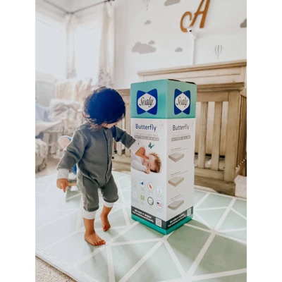 The Sealy Butterfly Breathable Knit Crib and Toddler Mattress provides a firm and supportive sleeping surface with a premium breathable knit cover – delivered to your door in a convenient, easy-carry package. Simply unroll the mattress, allowing it to fully expand into a full-size crib mattress for a flat and firm sleeping foundation for your little one. An American-made high-density foam core provides durability, firmness and superior comfort for infants and toddlers. The breathable knit cover is comfortable on baby’s skin and easily zippers on and off the mattress for easy cleaning. A waterproof barrier protects the mattress from leaky messes and spills. The Sealy Butterfly Breathable Knit Baby Mattress is designed to provide a snug, secure fit in USA standard full-size cribs and toddler beds. The mattress is extensively safety, quality and durability tested and is GREENGUARD Gold Certified for indoor air quality and low chemical emissions to create a healthy nursery for your little one.