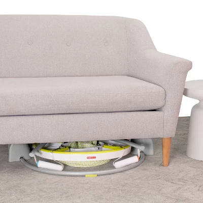 Our activity jumper for baby tracks each jump and folds flat for storage! With a light-up cloud bounce counter to track baby’s jumps, our jumper rewards baby with lights and music and breaks into applause at 100-jump milestones! It features a 360-degree rotating seat so baby can sit, swivel and bounce for maximum exploration. Clip-on, movable toys encourage development and allow for customized play. When playtime is done, easily fold our baby jumper flat for storage and transport.