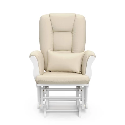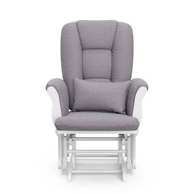 The Storkcraft Tuscany Glider and Ottoman gives an instant lift to the decor of your nursery. The Storkcraft Tuscany Glider and Ottoman makes feeding time easy for mother and child while adding a touch of charm to the room. The soft polyester gives a comfortable feel while being durable. With enclosed metal ball-bearings, this wooden glider allows for incredibly smooth rocking. Solid wood construction gives these pieces a sturdy feel that you’ll appreciate far beyond the baby years. With a range of finishes and cushion colors to choose from, it’s easy to coordinate with any nursery.