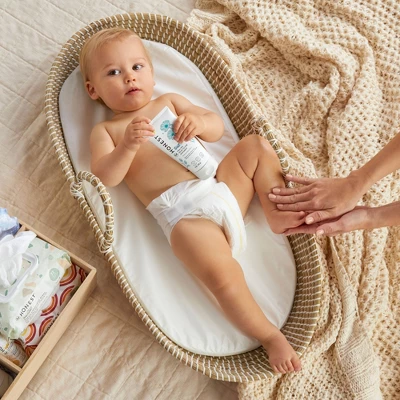Apply my vegan formula as needed to chafed, chapped, or diaper rash-prone skin for therapeutic relief. I’m made with allantoin for multi-purpose healing of dry, cracked skin and sunflower seed oil to help support a healthy skin barrier. Store at room temperature.