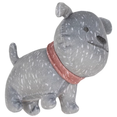 Encourage eye tracking and sound perception skills with the Dog Park Musical Mobile by Trend Lab. Featuring gray leaves on the arms, dogs in rust, paloma gray, beige, muted blue, brown and bedtime gray are suspended from decorative white ribbon to slowly rotate to Brahms’ Lullaby. White slide cover to protect the arm is included. This mobile coordinates with the Dog Park Bedding Collection and is sold separately.